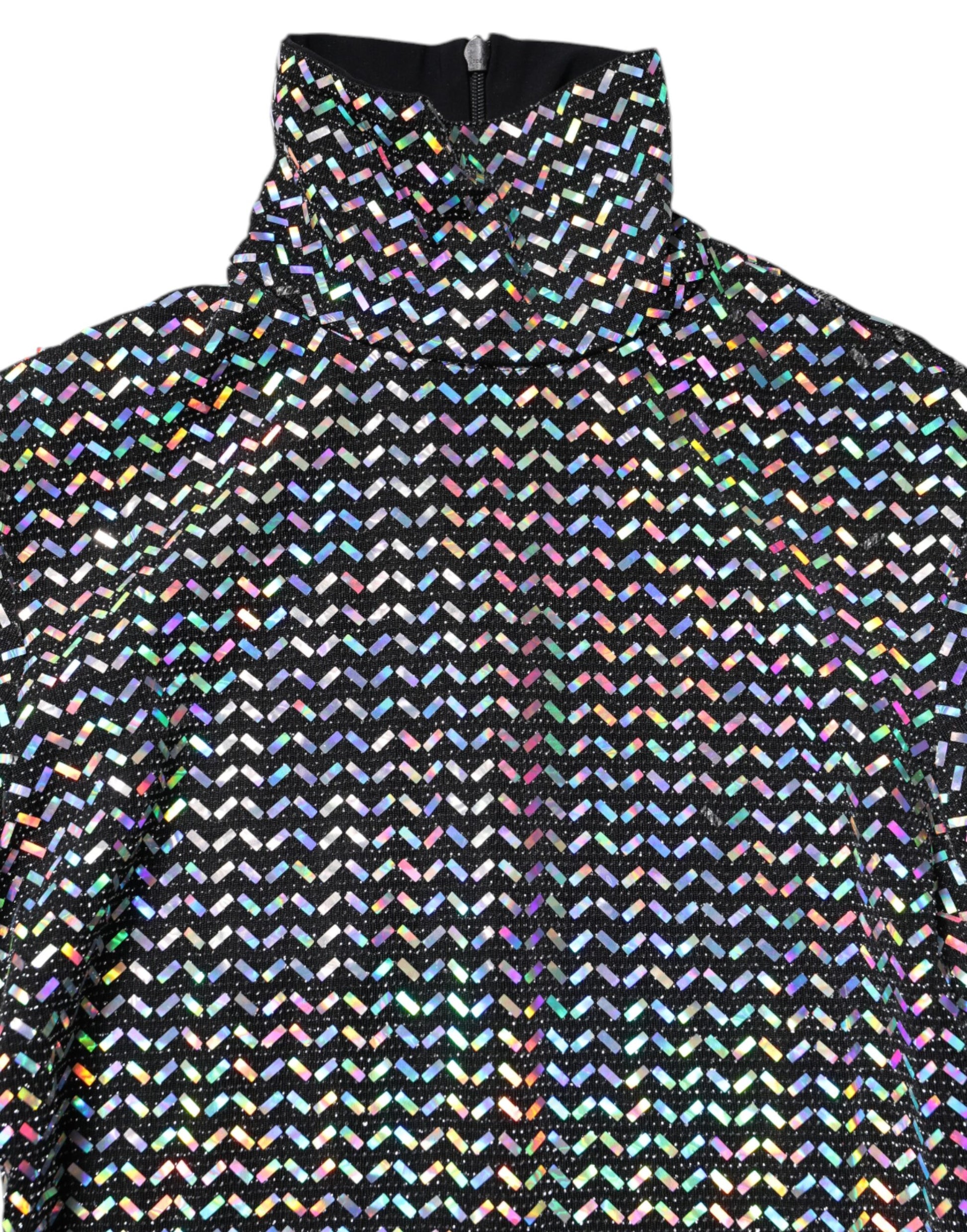 Black Embellished Nylon Bodycon Mini Dress