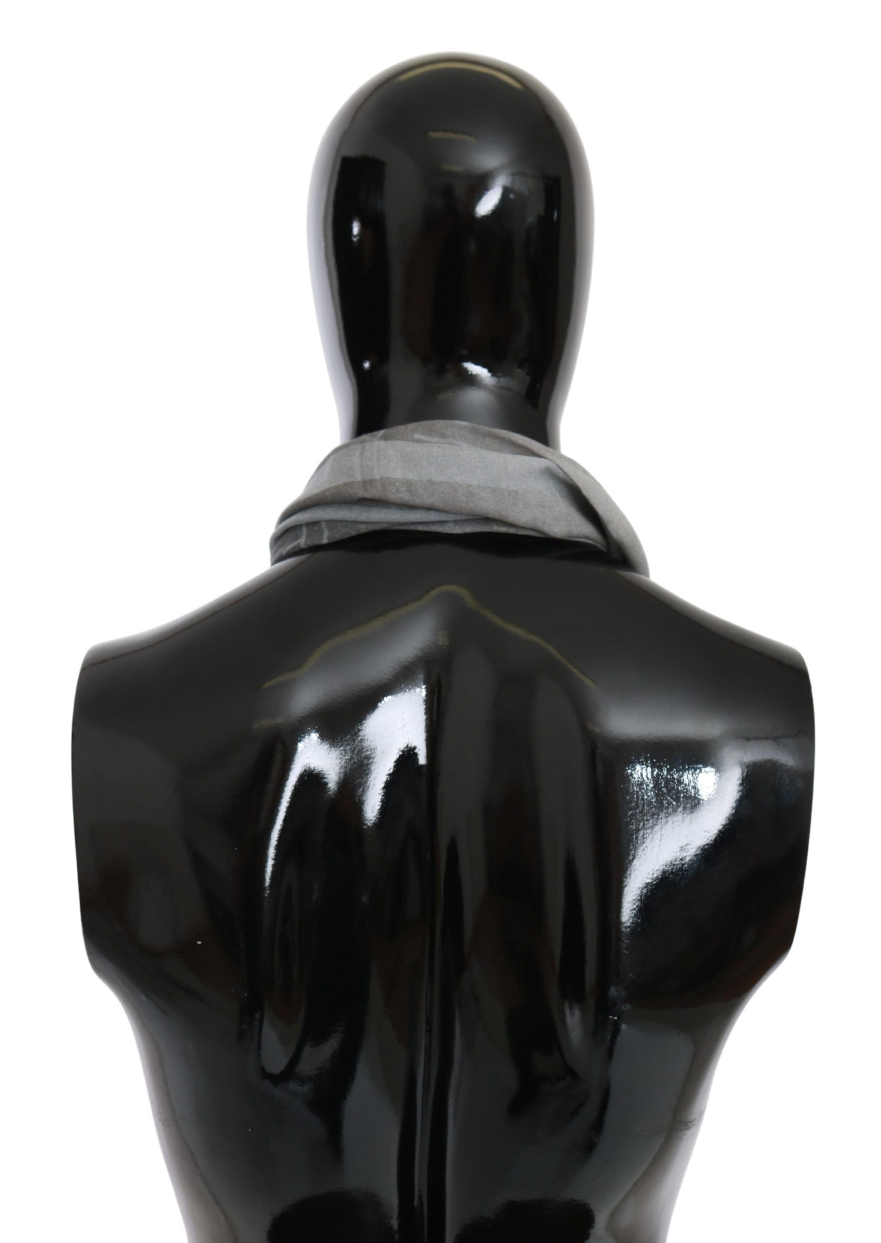 Gray Wool Viscose Foulard Patterned Branded Scarf