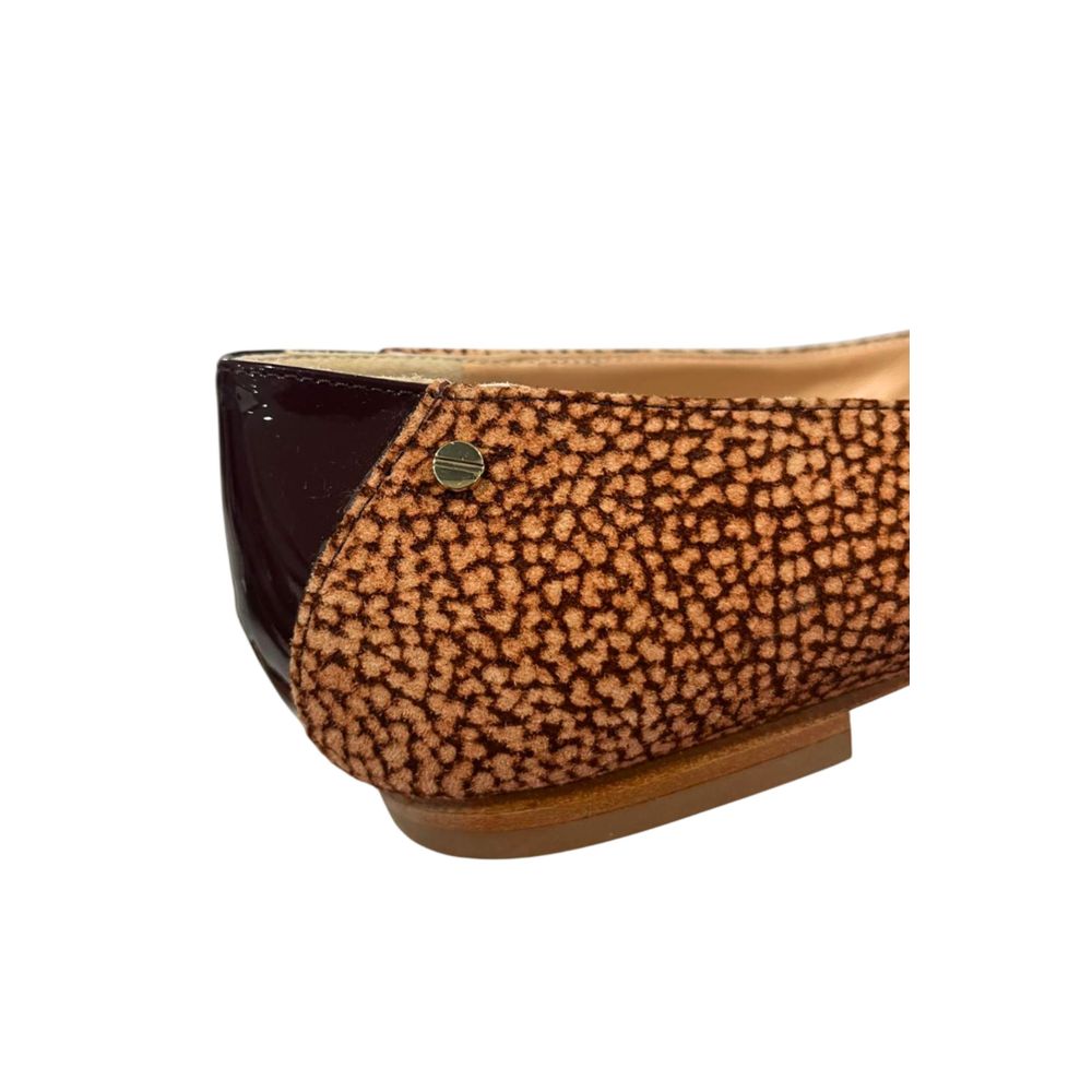 Transform your every step into a statement of elegance with Borbonese’s Pointed-toe Ballet Shoes. These Italian-crafted beauties blend timeless charm with a hint of opulence, courtesy of their exquisite gold detailing and tasteful spotted print. Perfectly poised with a low heel, they’re set to become the centerpiece of your ensemble, embodying both comfort and high-fashion flair. Experience luxury with every stride in these beige Borbonese sandals.