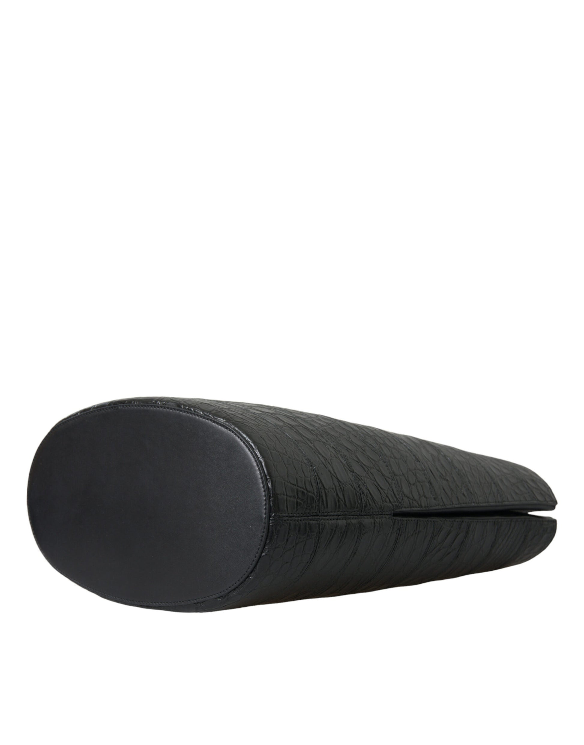 Black Exotic Skin Leather Maxi Bucket Tote Purse Bag