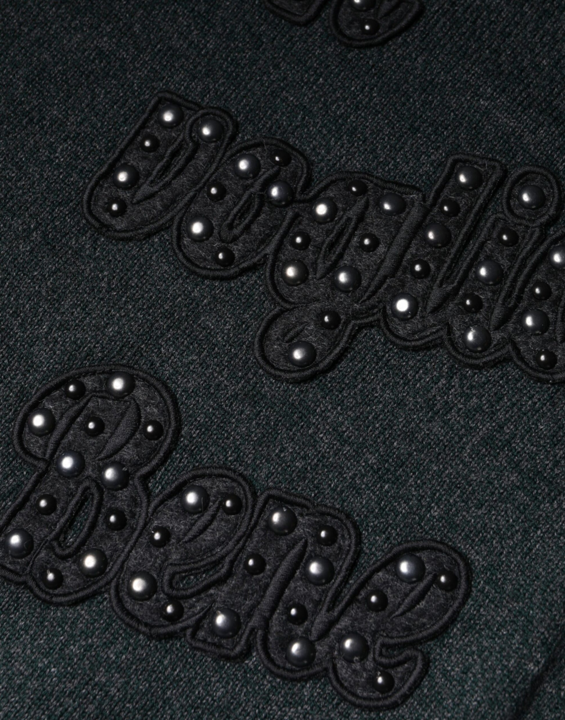 Gray Embellished Crew Neck Pullover Sweater